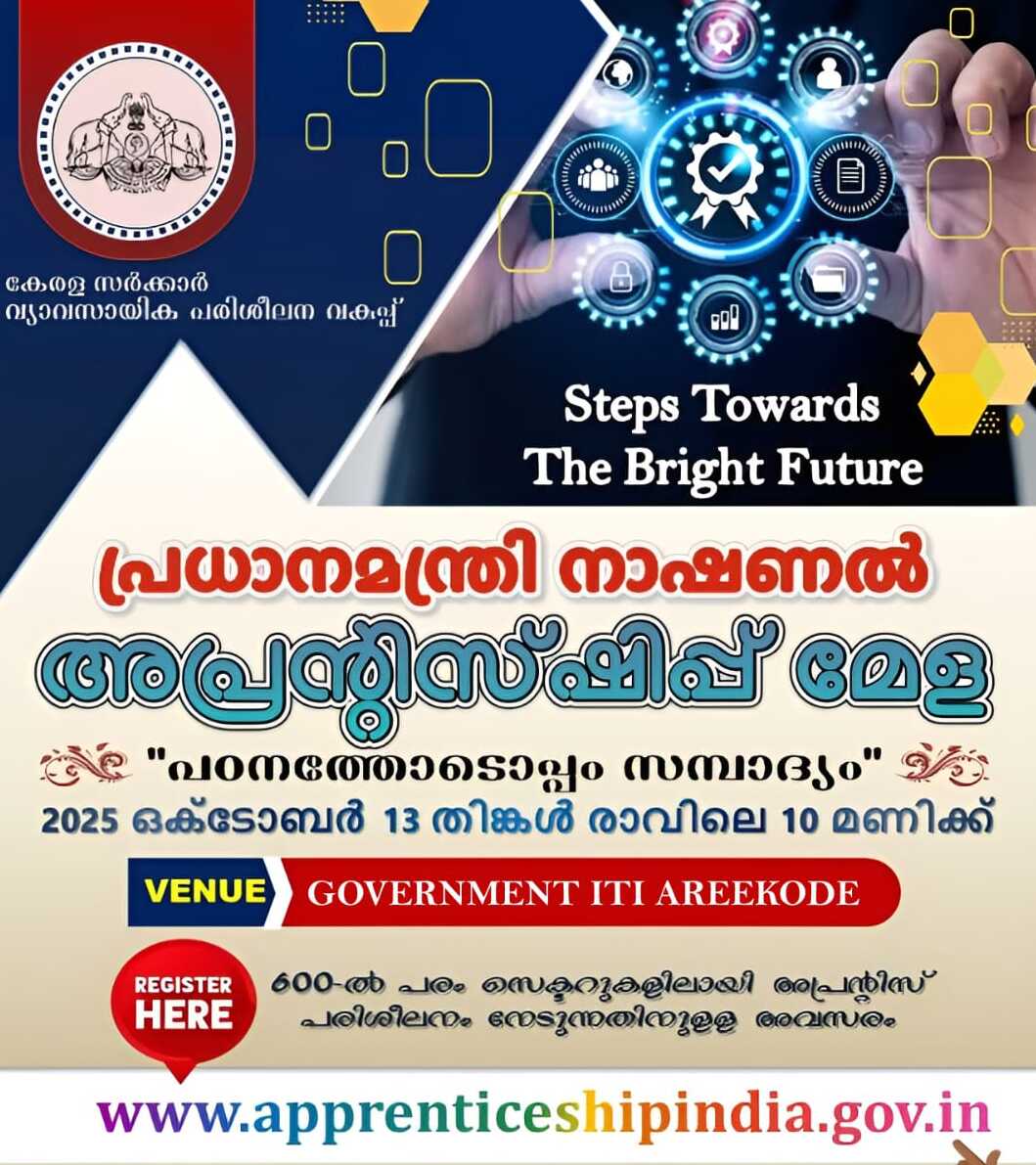 Click for Apprentice Mela 2025 Notification @ Govt. ITI, Areacode, on Monday 13th October 2025