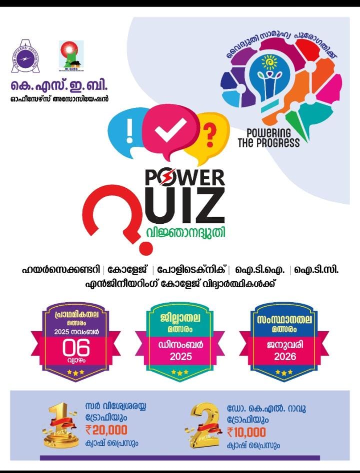 Power Quiz 2025 പ്രാഥമികതല മത്സരം @ H M O ITI on 06/11/2025 10 A.M by KSEB #ksebofficersassociation